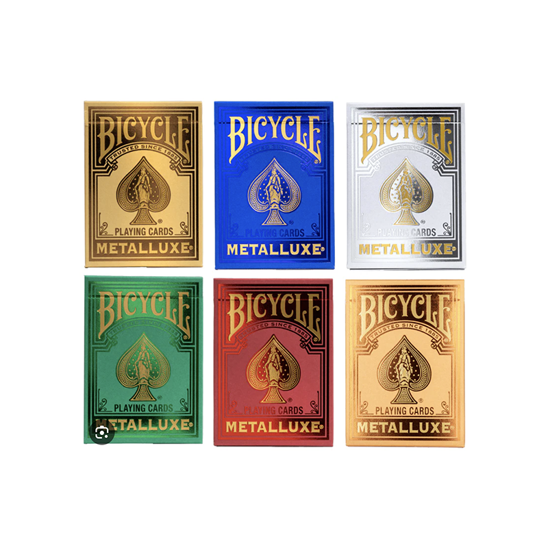 Tout droit sortie de LA société américaine des cartes à jouer (USPCC), la technologie exclusive MetalLuxe® confère à ces cartes une flexibilité et une durabilité conformes à celles d'une carte Bicycle Rider Back (autrement dit, la meilleure pour les magiciens des cartes !).