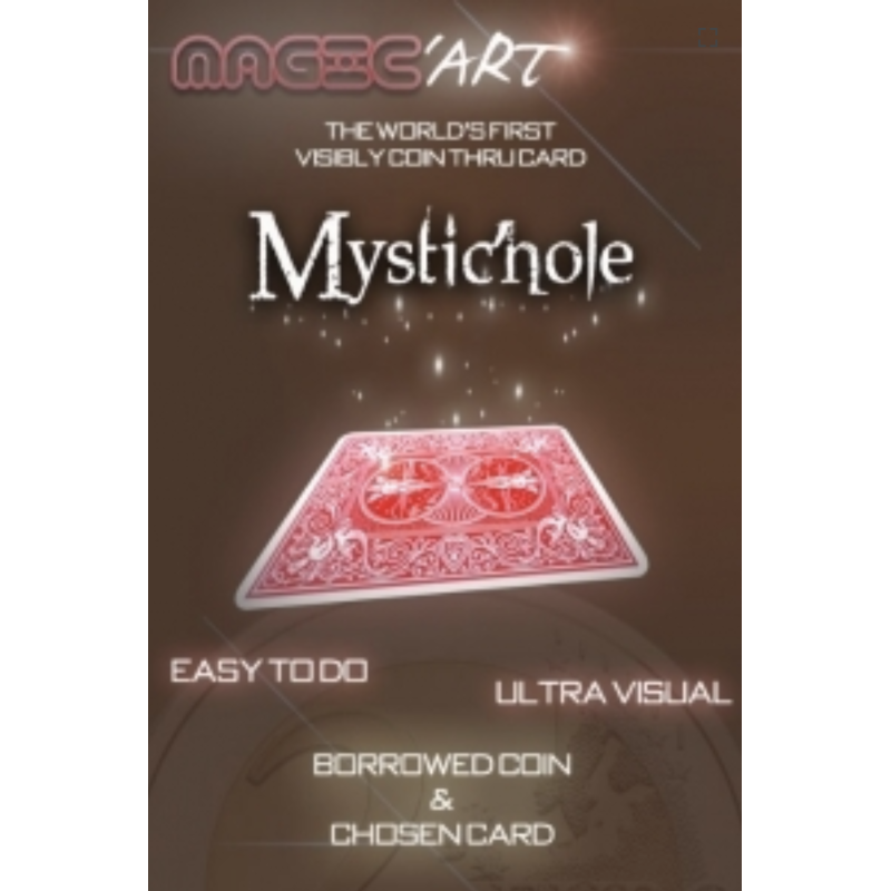Une carte est choisie, une pièce est empruntée. Le magicien pousse la pièce à angle droit à travers le dos de la carte choisie… et la pièce traverse totalement la carte pour atterrir dans la main du spectateur !