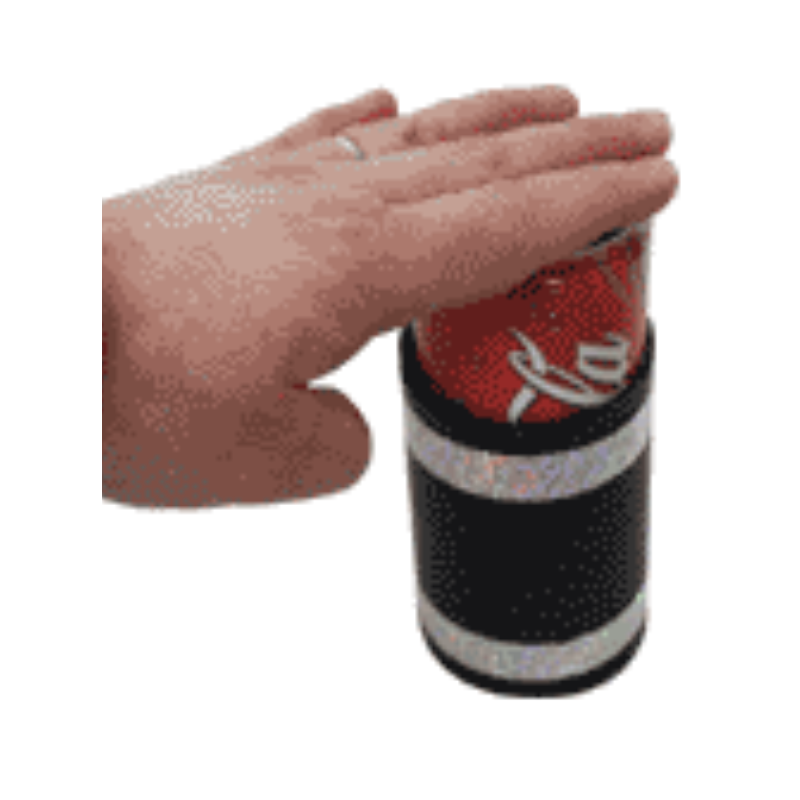 Le magicien présente une canette de Coca bien ordinaire ainsi qu’un tube vide. Après avoir montré ce dernier au public, il enfonce lentement la canette à l’intérieur. Les spectateurs assistent à une transformation étonnante : la canette rétrécit visiblement à vue d’œil, comme écrasée par le tube !