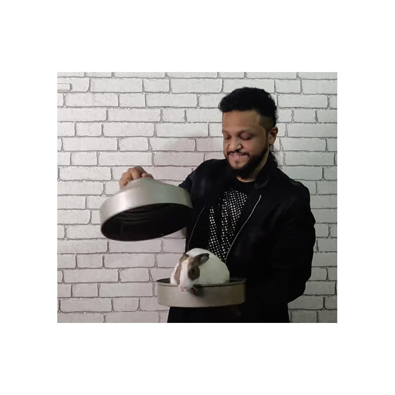 Le magicien présente une grande casserole vide, et son couvercle, qu'il montre des deux côtés. Il recouvre la casserole de son couvercle. Lorsqu'il l'ouvre à nouveau, elle contient cette fois un lapin – ou un canard, plusieurs colombes ou pigeons, un chiot ou un chaton, ou d'autres animaux de compagnie de taille moyenne !